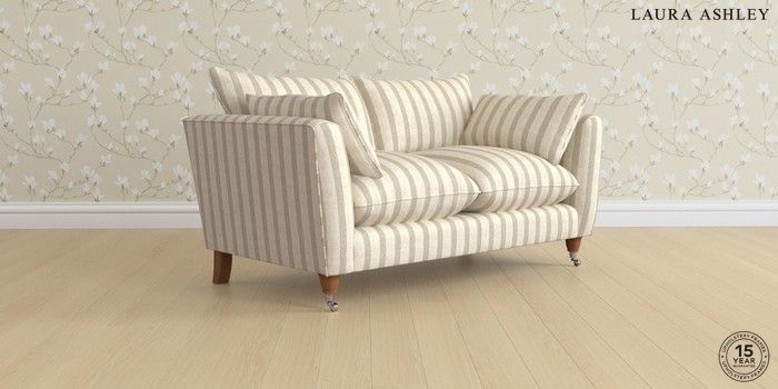 6.12.1 Buy Casterton by Laura Ashley 2 Seater Sofa Kinsham Stripe Natural Low Chrome Castor - Teak from the Next UK online shop Click here to use our accessible website