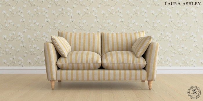 7.0.3 Buy Casterton by Laura Ashley 2 Seater Sofa Kinsham Stripe Ochre Yellow Low Turned - Light Oak from the Next UK online shop Click here to use our accessible website