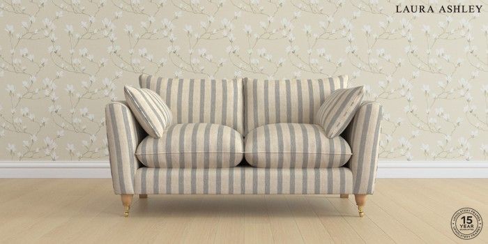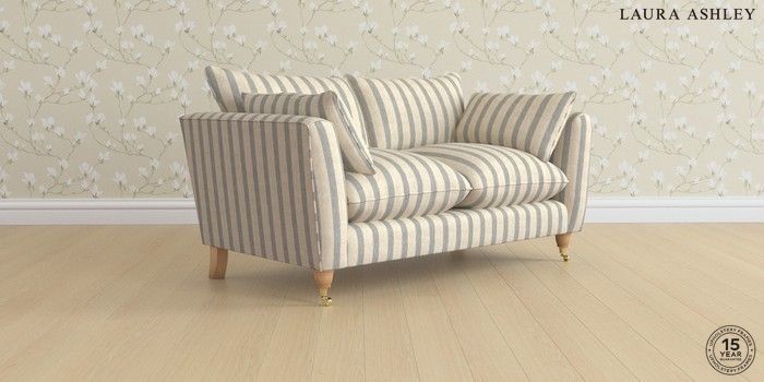 6.12.1 Buy Casterton by Laura Ashley 2 Seater Sofa Kinsham Stripe Seaspray Blue Low Brass Castor - Light Oak from the Next UK online shop Click here to use our accessible website