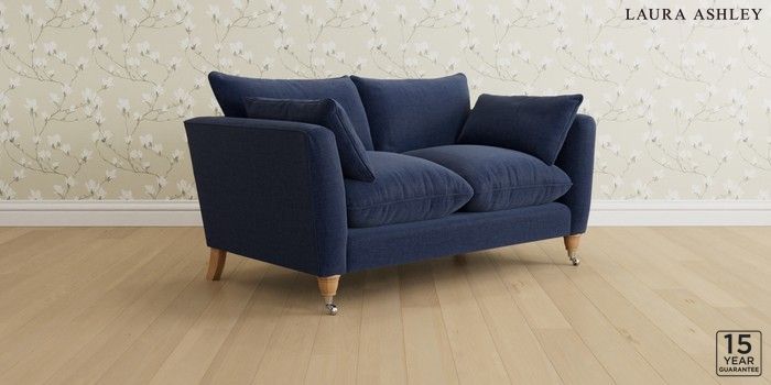6.12.1 Buy Casterton by Laura Ashley 2 Seater Sofa Nantmor Midnight Navy Low Chrome Castor - Light Oak from the Next UK online shop Click here to use our accessible website