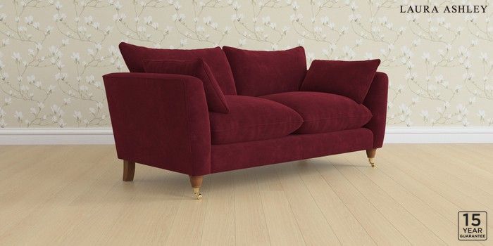6.12.13 Buy Casterton by Laura Ashley 3 Seater Small Sofa Alwyn Velvet Burgundy Red Low Brass Castor - Teak from the Next UK online shop Click here to use our accessible website