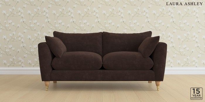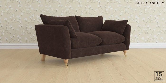6.12.1 Buy Casterton by Laura Ashley 3 Seater Small Sofa Alwyn Velvet Chocolate Brown Low Brass Castor - Light Oak from the Next UK online shop Click here to use our accessible website