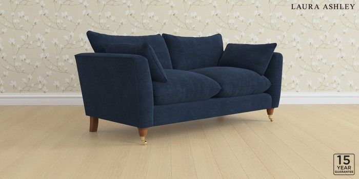 6.12.1 Buy Casterton by Laura Ashley 3 Seater Small Sofa Alwyn Velvet Midnight Navy Low Brass Castor - Teak from the Next UK online shop Click here to use our accessible website