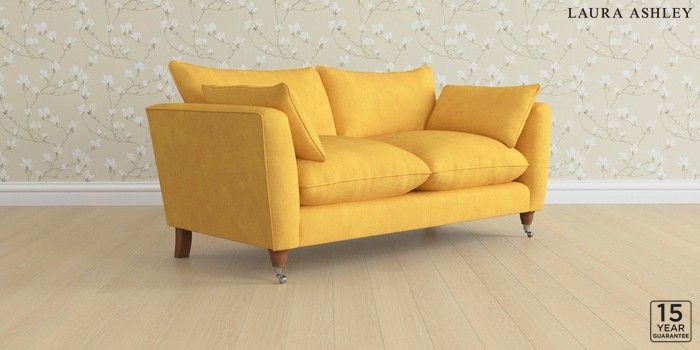 6.12.1 Buy Casterton by Laura Ashley 3 Seater Small Sofa Bainton Ochre Yellow Low Chrome Castor - Teak from the Next UK online shop Click here to use our accessible website