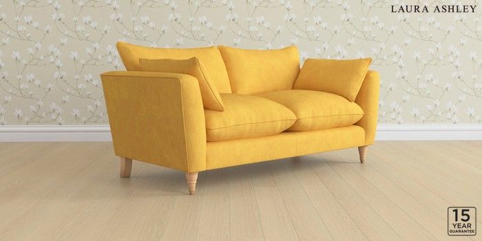 6.12.1 Buy Casterton by Laura Ashley 3 Seater Small Sofa Bainton Ochre Yellow Low Turned - Light Oak from the Next UK online shop Click here to use our accessible website