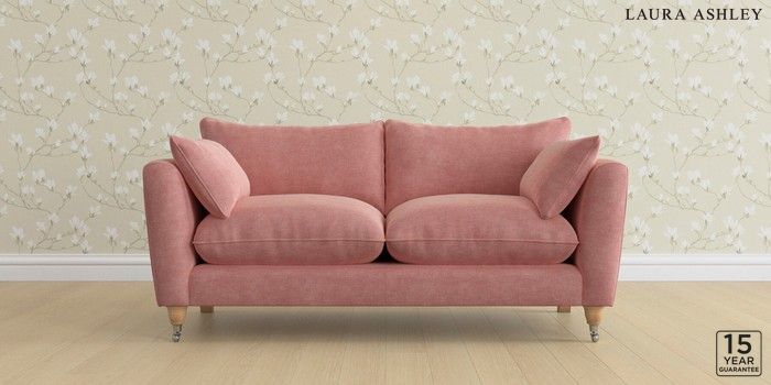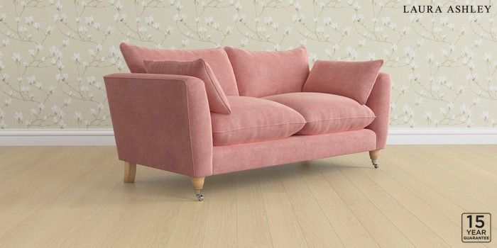 6.12.13 Buy Casterton by Laura Ashley 3 Seater Small Sofa Bainton Old Rose Pink Low Chrome Castor - Light Oak from the Next UK online shop Click here to use our accessible website