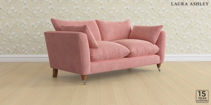 6.12.1 Buy Casterton by Laura Ashley 3 Seater Small Sofa Bainton Old Rose Pink Low Chrome Castor - Teak from the Next UK online shop Click here to use our accessible website