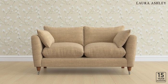 6.12.1 Buy Casterton by Laura Ashley 3 Seater Small Sofa Edwin Chenille Gold Natural Low Chrome Castor - Teak from the Next UK online shop Click here to use our accessible website