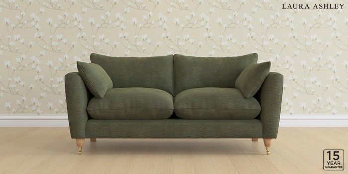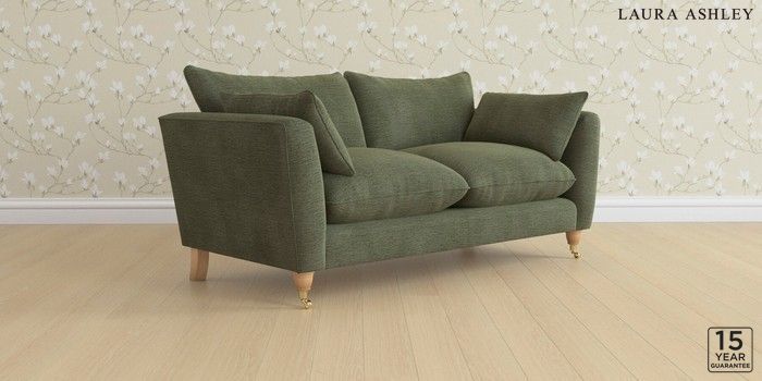 6.12.1 Buy Casterton by Laura Ashley 3 Seater Small Sofa Edwin Chenille Hedgerow Green Low Brass Castor - Light Oak from the Next UK online shop Click here to use our accessible website