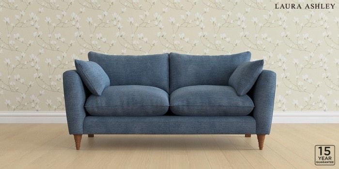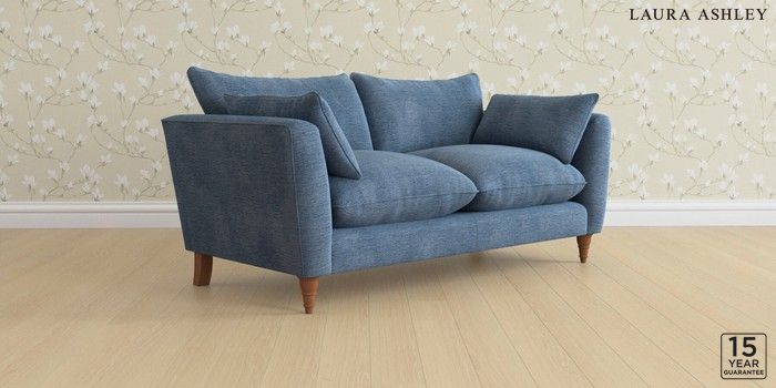 6.12.1 Buy Casterton by Laura Ashley 3 Seater Small Sofa Edwin Chenille Seaspray Blue Low Turned - Teak from the Next UK online shop Click here to use our accessible website