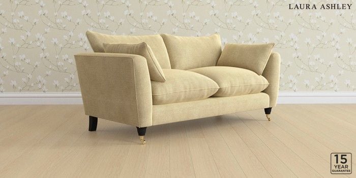 6.12.1 Buy Casterton by Laura Ashley 3 Seater Small Sofa Edwin Chenille Truffle Natural Low Brass Castor - Black from the Next UK online shop Click here to use our accessible website