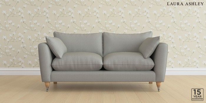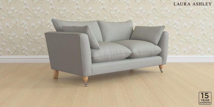 6.12.1 Buy Casterton by Laura Ashley 3 Seater Small Sofa Edwin Herringbone Pale Steel Grey Low Chrome Castor - Light Oak from the Next UK online shop Click here to use our accessible website