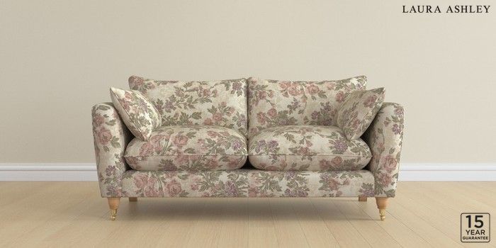 6.12.13 Buy Casterton by Laura Ashley 3 Seater Small Sofa Ellerby Grape Purple Low Brass Castor - Light Oak from the Next UK online shop Click here to use our accessible website