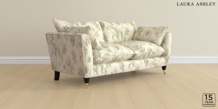 6.12.13 Buy Casterton by Laura Ashley 3 Seater Small Sofa Gosford Weave Sage Green Low Brass Castor - Black from the Next UK online shop Click here to use our accessible website
