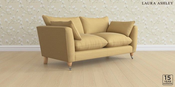 6.12.1 Buy Casterton by Laura Ashley 3 Seater Small Sofa Kinsham Ochre Yellow Low Chrome Castor - Light Oak from the Next UK online shop Click here to use our accessible website