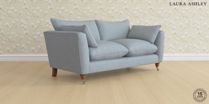 6.12.1 Buy Casterton by Laura Ashley 3 Seater Small Sofa Kinsham Seaspray Blue Low Chrome Castor - Teak from the Next UK online shop Click here to use our accessible website