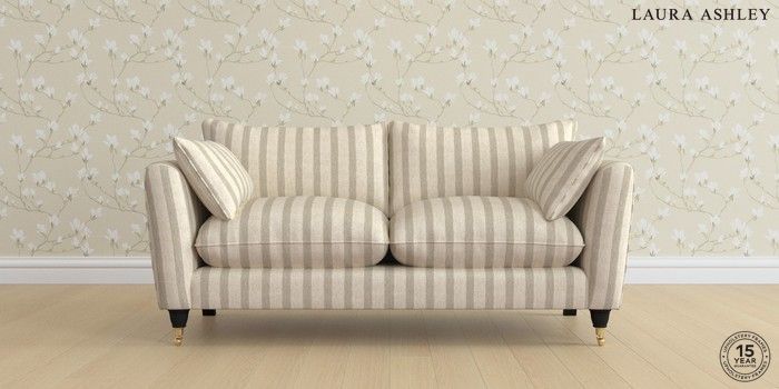 6.12.1 Buy Casterton by Laura Ashley 3 Seater Small Sofa Kinsham Stripe Natural Low Brass Castor - Black from the Next UK online shop Click here to use our accessible website