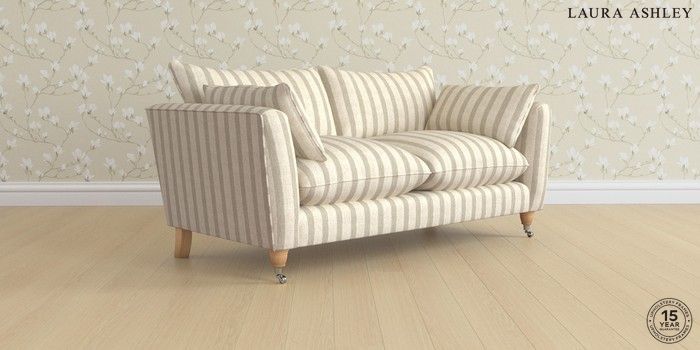 6.12.1 Buy Casterton by Laura Ashley 3 Seater Small Sofa Kinsham Stripe Natural Low Chrome Castor - Light Oak from the Next UK online shop Click here to use our accessible website