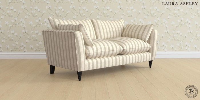 6.12.1 Buy Casterton by Laura Ashley 3 Seater Small Sofa Kinsham Stripe Natural Low Turned - Black from the Next UK online shop Click here to use our accessible website