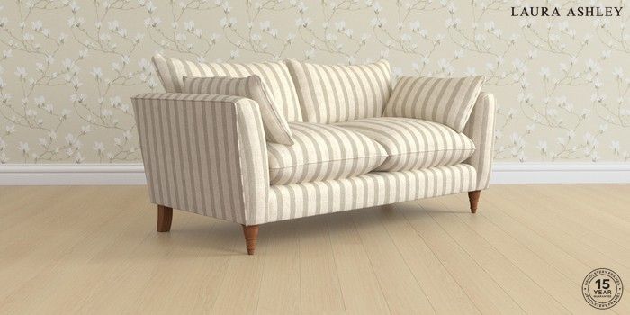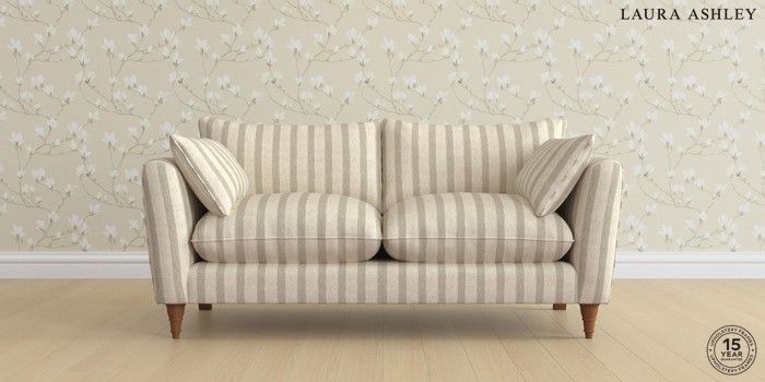 6.12.1 Buy Casterton by Laura Ashley 3 Seater Small Sofa Kinsham Stripe Natural Low Turned - Teak from the Next UK online shop Click here to use our accessible website