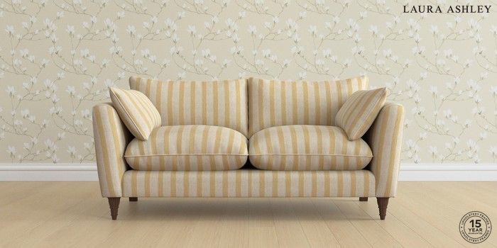 7.0.3 Buy Casterton by Laura Ashley 3 Seater Small Sofa Kinsham Stripe Ochre Yellow Low Turned - Chestnut from the Next UK online shop Click here to use our accessible website
