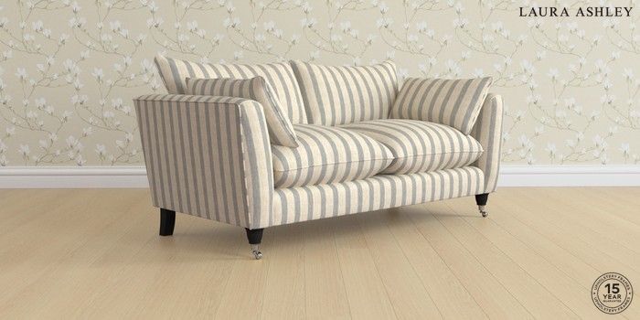 6.12.1 Buy Casterton by Laura Ashley 3 Seater Small Sofa Kinsham Stripe Seaspray Blue Low Chrome Castor - Black from the Next UK online shop Click here to use our accessible website