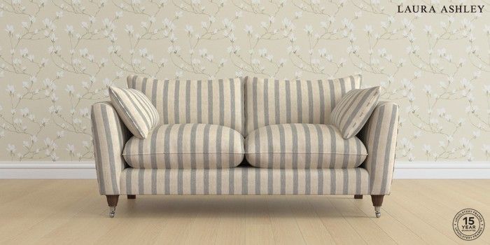 6.12.1 Buy Casterton by Laura Ashley 3 Seater Small Sofa Kinsham Stripe Seaspray Blue Low Chrome Castor - Chestnut from the Next UK online shop Click here to use our accessible website