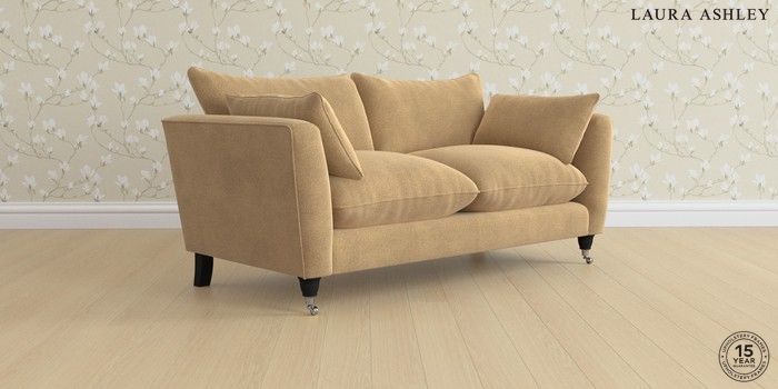 6.12.1 Buy Casterton by Laura Ashley 3 Seater Small Sofa Lundar Chenille Caramel Natural Low Chrome Castor - Black from the Next UK online shop Click here to use our accessible website