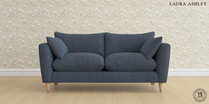 6.12.1 Buy Casterton by Laura Ashley 3 Seater Small Sofa Lundar Chenille Navy Blue Low Turned - Light Oak from the Next UK online shop Click here to use our accessible website