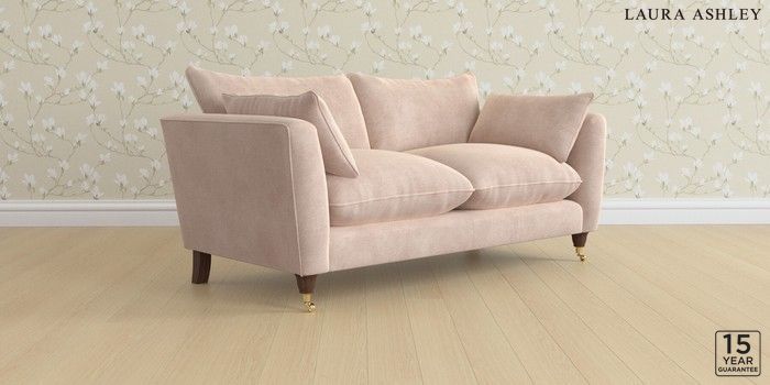 6.12.1 Buy Casterton by Laura Ashley 3 Seater Small Sofa Orla Chalk Pink Low Brass Castor - Chestnut from the Next UK online shop Click here to use our accessible website