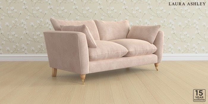 6.12.1 Buy Casterton by Laura Ashley 3 Seater Small Sofa Orla Chalk Pink Low Brass Castor - Light Oak from the Next UK online shop Click here to use our accessible website