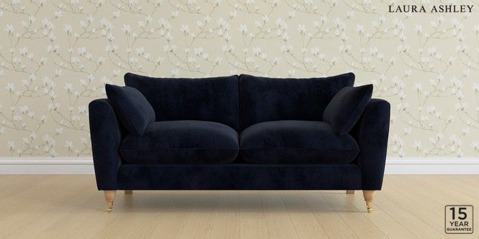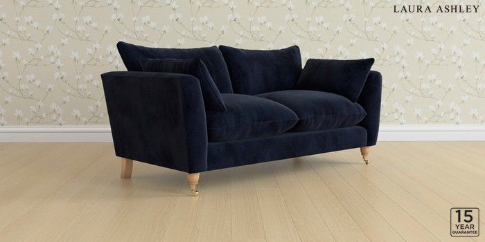 6.12.1 Buy Casterton by Laura Ashley 3 Seater Small Sofa Orla Midnight Navy Low Brass Castor - Light Oak from the Next UK online shop Click here to use our accessible website