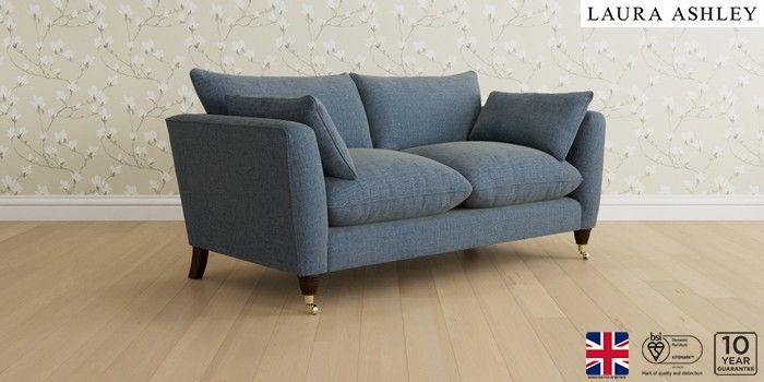 6.11.4 Buy Casterton by Laura Ashley 3 Seater Small Sofa Orla Seaspray Blue Low Brass Castor - Chestnut from the Next UK online shop Click here to use our accessible website
