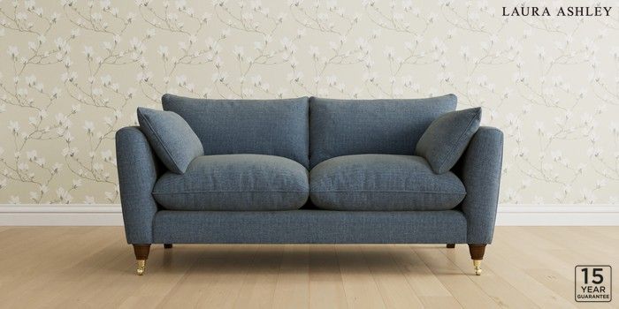 6.12.1 Buy Casterton by Laura Ashley 3 Seater Small Sofa Orla Seaspray Blue Low Brass Castor - Teak from the Next UK online shop Click here to use our accessible website