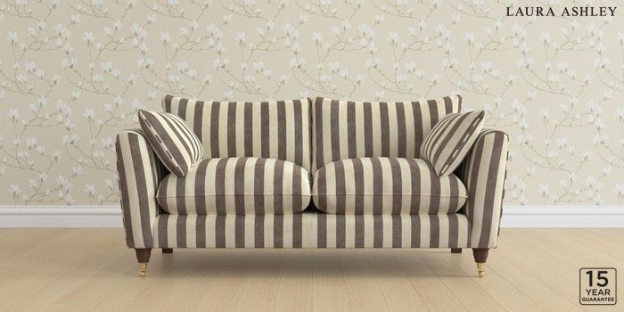 6.12.13 Buy Casterton by Laura Ashley 3 Seater Small Sofa Orla Stripe Dark Truffle Natural Low Brass Castor - Chestnut from the Next UK online shop Click here to use our accessible website