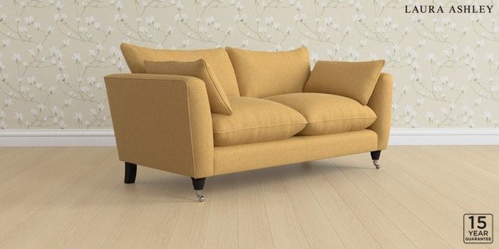 6.12.1 Buy Casterton by Laura Ashley 3 Seater Small Sofa Peyton Ochre Yellow Low Chrome Castor - Black from the Next UK online shop Click here to use our accessible website