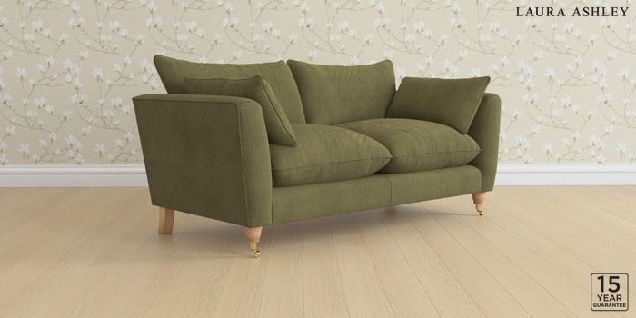 6.12.1 Buy Casterton by Laura Ashley 3 Seater Small Sofa Sinclair Cord Ivy Green Low Brass Castor - Light Oak from the Next UK online shop Click here to use our accessible website