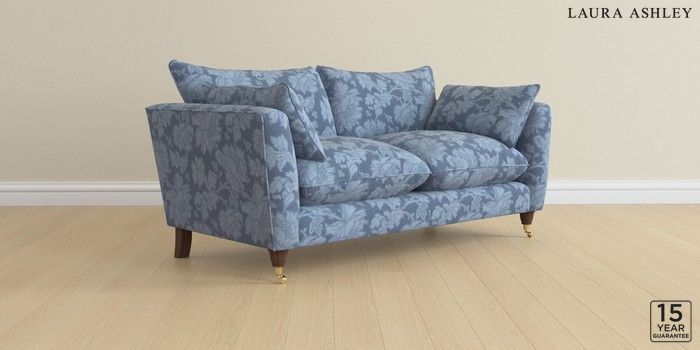6.12.1 Buy Casterton by Laura Ashley 3 Seater Small Sofa Tamara Dusky Seaspray Blue Low Brass Castor - Chestnut from the Next UK online shop Click here to use our accessible website