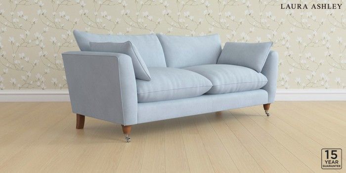 6.12.1 Buy Casterton by Laura Ashley 3 Seater Sofa Ailsworth Newport Blue Low Chrome Castor - Teak from the Next UK online shop Click here to use our accessible website