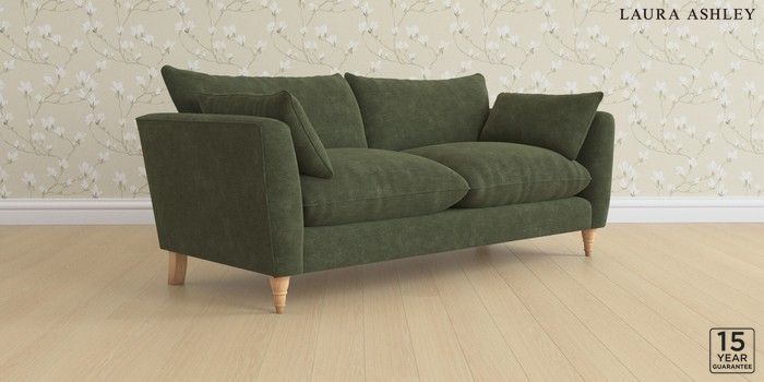 6.12.13 Buy Casterton by Laura Ashley 3 Seater Sofa Alwyn Velvet Ivy Green Low Turned - Light Oak from the Next UK online shop Click here to use our accessible website