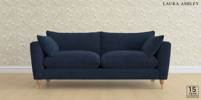 6.12.1 Buy Casterton by Laura Ashley 3 Seater Sofa Alwyn Velvet Midnight Navy Low Brass Castor - Light Oak from the Next UK online shop Click here to use our accessible website