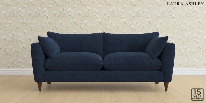 6.12.1 Buy Casterton by Laura Ashley 3 Seater Sofa Alwyn Velvet Midnight Navy Low Turned - Chestnut from the Next UK online shop Click here to use our accessible website