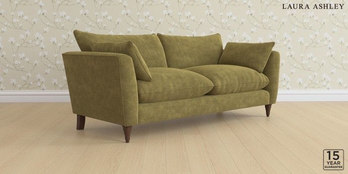 6.12.1 Buy Casterton by Laura Ashley 3 Seater Sofa Alwyn Velvet Olive Green Low Turned - Chestnut from the Next UK online shop Click here to use our accessible website
