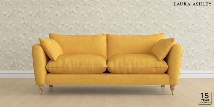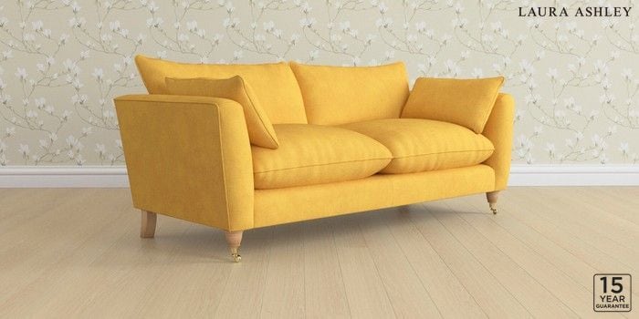 6.12.1 Buy Casterton by Laura Ashley 3 Seater Sofa Bainton Ochre Yellow Low Brass Castor - Light Oak from the Next UK online shop Click here to use our accessible website