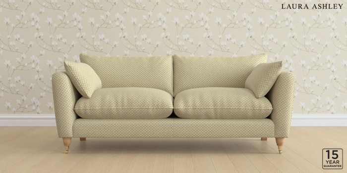 6.12.1 Buy Casterton by Laura Ashley 3 Seater Sofa Chequers Hedgerow Green Low Brass Castor - Light Oak from the Next UK online shop Click here to use our accessible website
