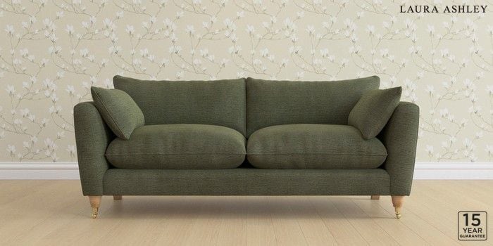 6.12.1 Buy Casterton by Laura Ashley 3 Seater Sofa Edwin Chenille Hedgerow Green Low Brass Castor - Light Oak from the Next UK online shop Click here to use our accessible website