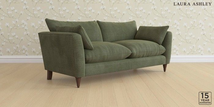 6.12.1 Buy Casterton by Laura Ashley 3 Seater Sofa Edwin Chenille Hedgerow Green Low Turned - Chestnut from the Next UK online shop Click here to use our accessible website