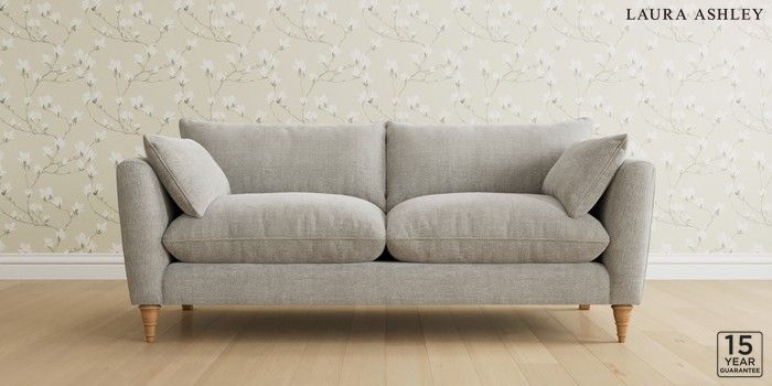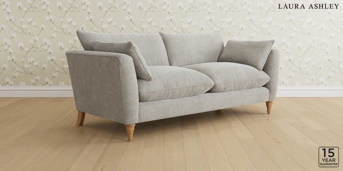 6.12.1 Buy Casterton by Laura Ashley 3 Seater Sofa Edwin Chenille Silver Grey Low Turned - Light Oak from the Next UK online shop Click here to use our accessible website