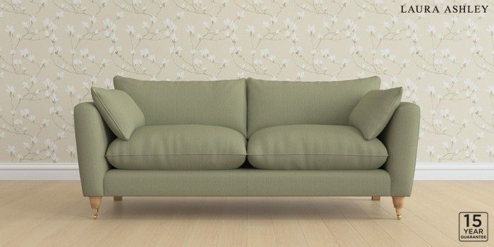 6.12.1 Buy Casterton by Laura Ashley 3 Seater Sofa Edwin Herringbone Hedgerow Green Low Brass Castor - Light Oak from the Next UK online shop Click here to use our accessible website