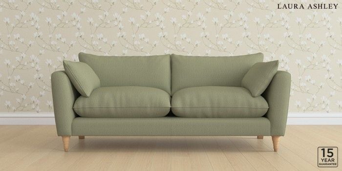 6.12.1 Buy Casterton by Laura Ashley 3 Seater Sofa Edwin Herringbone Hedgerow Green Low Turned - Light Oak from the Next UK online shop Click here to use our accessible website